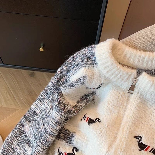 Puppy Embroidered Sweater Cardigan For Women