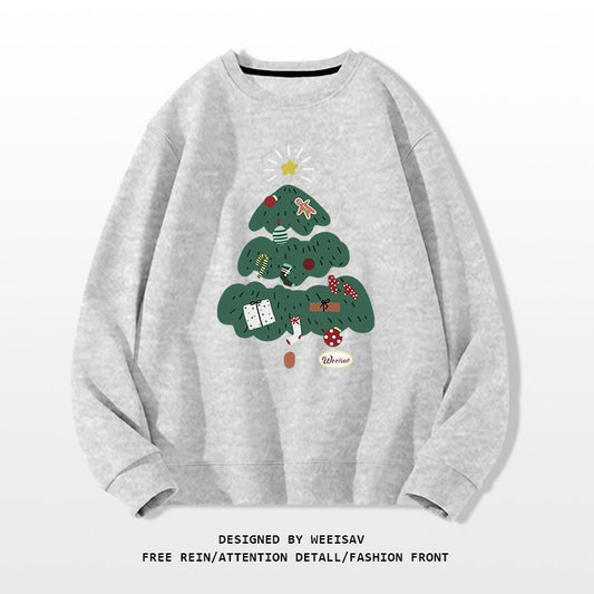 Christmas Element Printed Round-neck Non-hoodie Sweater