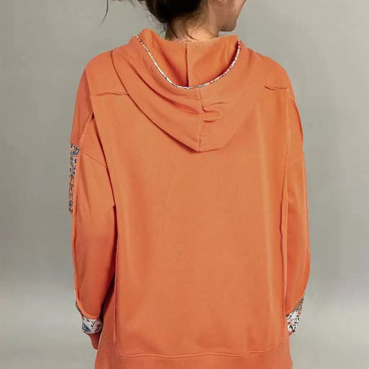 Pullover Hoodie With Drawstrings Top Casual Printed Loose Sweatshirt